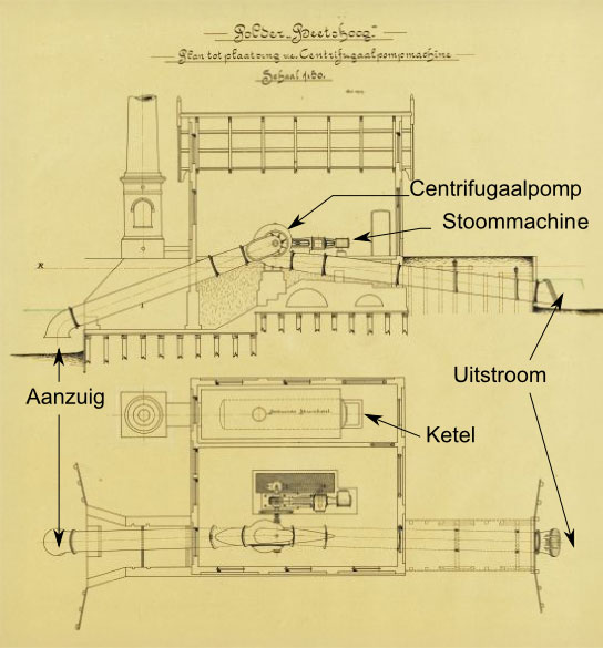 Bouw stoomgemaal met vijzelpomp. - 1897